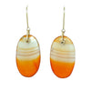 Lightweight and eye catching they faceted layered Carnelians show off their true colors unincumbered by settings. Hand drilled with 14k gold tubes they hang from solid gold ear wires.