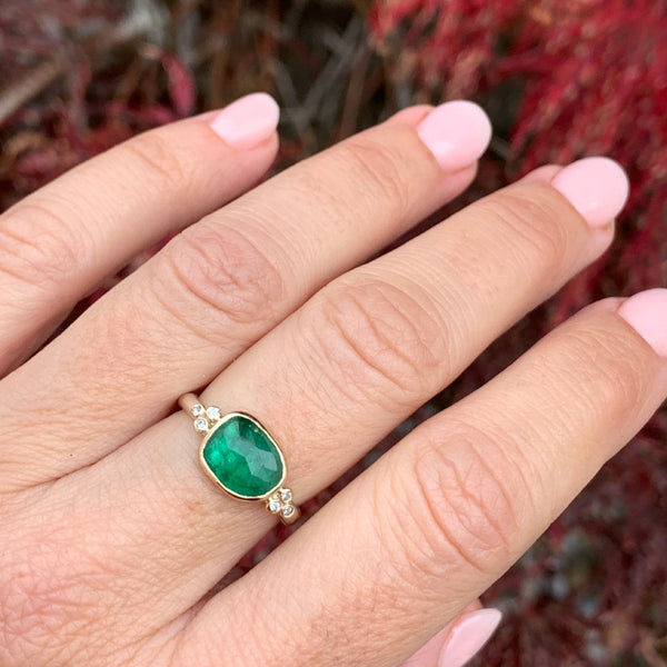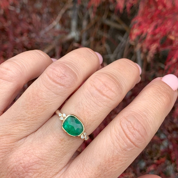 Super impressed with the sparkling white diamonds and the clarity of the Zambian Emerald! Love all my Emily Amey rings for the unique, one of a kind handmade designs. I’ll never go back to mass produced jewelry!😍