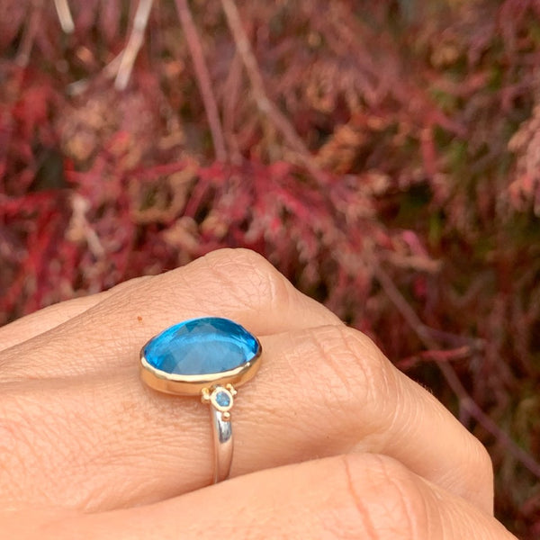 London blue Topaz and blue zircon ring in 14k gold and sterling silver