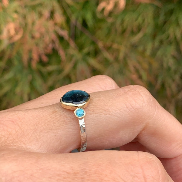 London blue Topaz and blue zircon ring in 14k gold and sterling silver