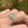 A wonderful glow emits from deep within this rosecut Peruvian Opal. Set in 14k yellow gold with petite white opals we finished this beauty with a handmade Sterling Silver seagrass band.