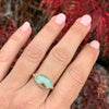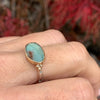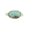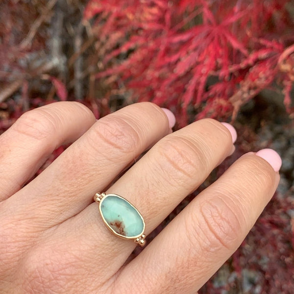 When Emily came across these Ocean Chrysoprase one year in Tucson she couldn't even entertain leaving them behind. Set in 14k yellow gold with handmade bead accents and a sterling silver seagrass band this beauty is sure to transport you to your favorite seascape.