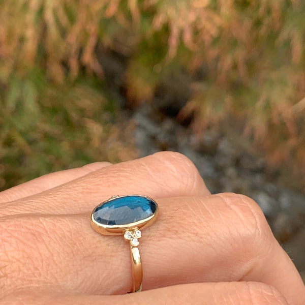 Ocean Kyanite Ring with Diamonds in 14k gold