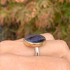 With a radioactive glow this super rare Andamooka Opal is set in 14k gold with our handcarved sterling silver sea kelp band. (due to the width of the band we recommend sizing up 1/4-1/2 sizes when ordering)