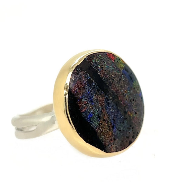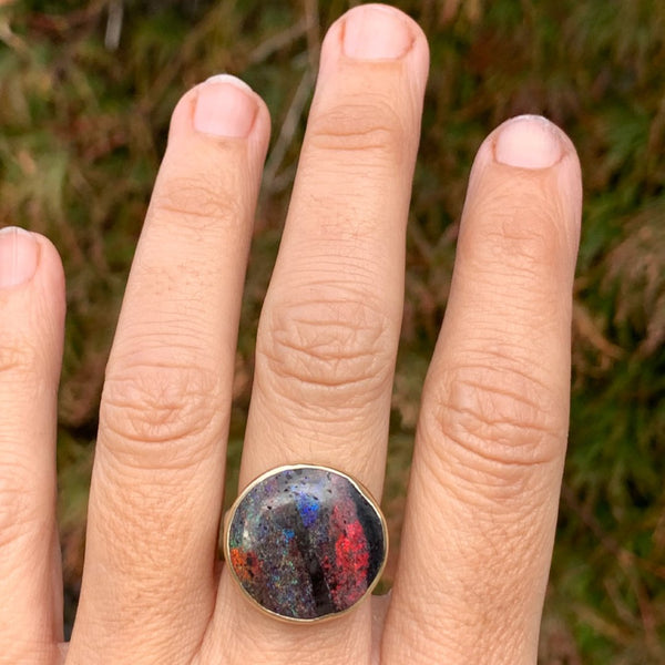 Australian Boulder Opal Cocktail ring in 14k yellow gold.