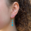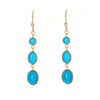 Set in 14k yellow gold these triple drop turquoise earrings have the most incredible movement. Solid gold ear wires.