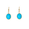 Set in open back gold bezels these incredible blue turquoise hand from handmade gold ear hooks. Simple and eye-catching.