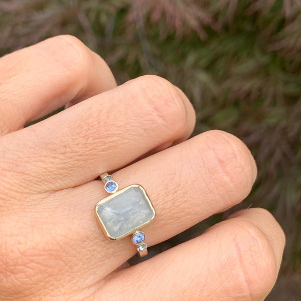 Cloud Sapphire ring with Sunstones in 14k gold and sterling silver
