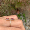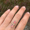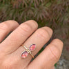 Set in 14k yellow gold a pair of complimentary Pink Tourmalines are finished with handmade gold granulation and hammered solid gold band.