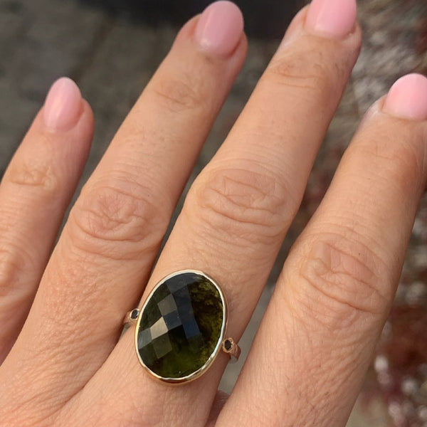 ["cocktail ring","green","green_main","handmade ring","mixed metal","moldavite","moldavite_main","one of a kind","one_ofa_kind","ready to ship","ready_to_ship","ring_gemstone","ring_mixed_metal","ring_modern","ring_statement","rings"]